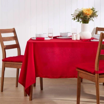HOMESCAPES Red Cotton Tablecloth 6 to 8 seater Large Rectangular 137 x 228 cm (54 90 Inches) Washable Hand Woven 100% Plain with Decorative Ladder Stitch Edge