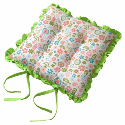 General description Reversible chair pad with ties and frills featuring a Retro Flower design. These decorative seat pads are perfect for garden chairs, benches, seating areas, or nurseries. With 8 original double designs available, they add a unique and playful touch to any space. Technical specifications Brand: Homescapes Size: 40cm x 40cm x 5cm (approx.) Colour: Green Cover Material: 100% cotton Filling: Polyester Care Instructions: Machine washable at 40°C Pack Includes: One seat pad Usage These cushions can be used in various settings including kitchens, dining rooms, or outdoors on garden furniture. They also make lovely gifts and are ideal for brightening up children's chairs in their bedrooms. Other information