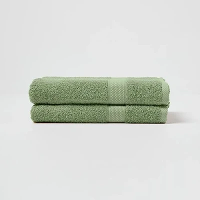 Set of 2 Bath Towels Size: 70 x 130 cm. Colour: Sage Green. A quality towel for everyday use in a heavy 500 GSM weight from Homescapes in 23 different colours. Six sizes are available in each colour. 100% finely combed cotton fibres ring spun and woven in Turkey. Towels from Turkey are known for the luxury they bring to every bathing experience. Retains its softness after wash due to higher quality of cotton fibre used in manufacturing. Washable at 40°C. For the best care of your towel, Homescapes recommends not to use fabric conditioner/softener whilst washing, and not to iron your towels as both reduce absorbency.