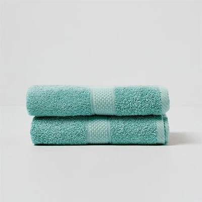 Set of 2 Hand Towels Size: 50 x 90 cm. Colour: Sea Green. A quality towel for everyday use in a heavy 500 GSM weight from Homescapes in 23 different colours. Six sizes are available in each colour. 100% finely combed cotton fibres ring spun and woven in Turkey. Towels from Turkey are known for the luxury they bring to every bathing experience. Retains its softness after wash due to higher quality of cotton fibre used in manufacturing. Washable at 40°C. For the best care of your towel, Homescapes recommends not to use fabric conditioner/softener whilst washing, and not to iron your towels as both reduce absorbency.