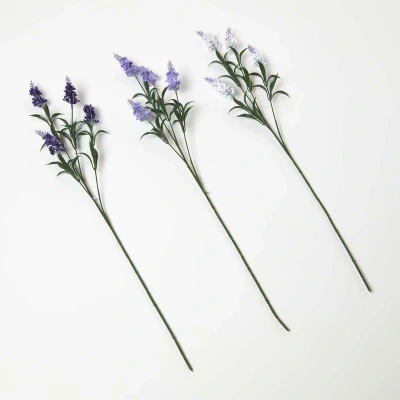 HOMESCAPES Set of 3 Purple & White Single Stem Lavender 68cm Long Fake Flower Stems Silk Sprays for Bouquet or Floral Arrangement