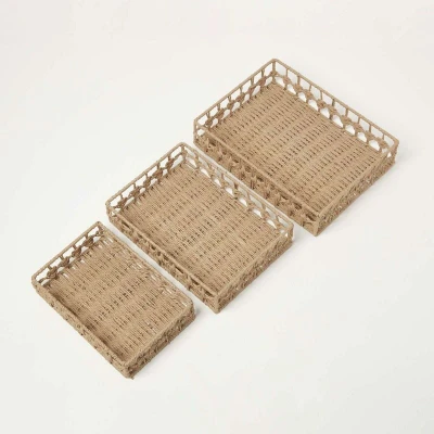 HOMESCAPES Set of 3 Woven Trays for Storage and Decoration Paper Weave Decorative Tinket Tray Three Sizes
