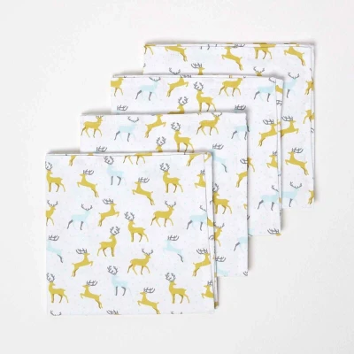 HOMESCAPES Set of 4 Grey & Yellow Napkins Stag Pattern 45 x cm 100% Cotton Christmas “Majestic Xmas Napkin