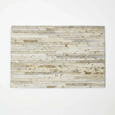 Set of 4 hide leather placemats with stripe pattern and gold speckled finish and recycled wool non-slip back. Measures: 46 x 30 cm. Colour: Beige and Grey. Expertly handcrafted placemats crafted from hand-cut 100% real hide leather. Each placemat features a unique thick stripe pattern that is handstitched and finished to the highest standards. These beautiful quality placemats are ideal for both daily and special occasion use. Non-slip placemats with durable premium-grade recycled wool back. These durable placemats are heat-resistant and will provide lasting protection to tabletops. Easy to care for, placemats can be wiped clean. Do not soak. Introducing a rustic style to your dining space, these natural textured placemats will complement modern and traditional styles. A truly unique placemat set, each mat features its own individual colour, tone and pattern finish. Part of our exclusive collection of real leather dining accessories, Co-ordinating coaster sets are also available. Homescapes are well respected for their top-quality homeware, furniture, soft furnishings and uncompromising service since the year 2000., Manufacturer: Homescapes