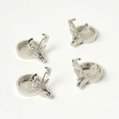 HOMESCAPES Set of 4 Stag Head Tea Light Holders Silver Chrome Candle Holder Christmas Decoration