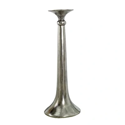 HOMESCAPES Silver Skirt Candlestick 44 cm (17 in) Tall 100% Aluminium Distressed Antique Finish Decorative Candle Holder