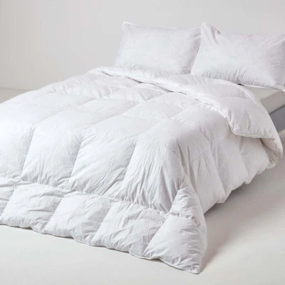 General description The HOMESCAPES Duck Feather and Down 10.5 Tog Single Size Autumn Duvet is designed to provide warmth and comfort during the cooler autumn and winter months. Filled with a blend of high-quality duck feather and down, this medium-weight duvet is ideal for those who prefer a balance between warmth and breathability. Technical specifications Brand: Homescapes Cover Material: 100% cotton Filling: 85% white duck feather, 15% duck down Season: Autumn/Winter Tog: 10.5 Dimensions: Approximately 230 x 220 cm Care Instructions: Machine washable at 40°C Other information Please allow a few hours before using so that the duvet can air and regain its shape. Regularly plumping your duvet is recommended to maintain lasting loft and comfort.