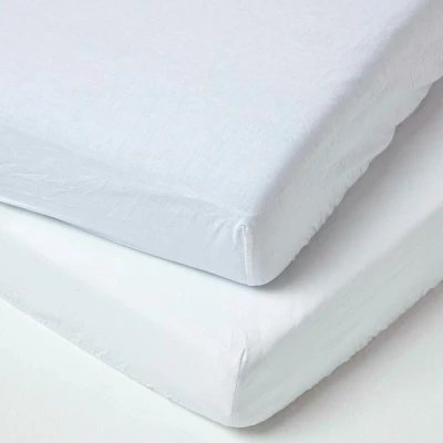 HOMESCAPES Soft Linen White Cot Fitted Sheets 120 x 60 cm 2 Pack Textured Natural French Flax Fibre & Pure 100% Cotton with Fully Elasticated Skirt Hypoallergenic Easy Care