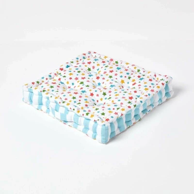 HOMESCAPES Star Multi 100% Cotton Large Floor Cushion Blue Orange White 50 x 10 cm Square Indoor Garden Dining Chair Booster Seat Pad Cushion.