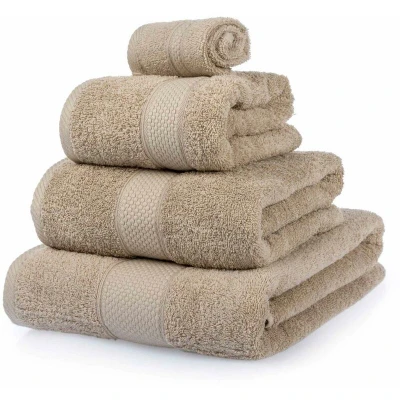 4 Piece Set of 1 x Face Towel, 1 x Hand Towel, 1 x Bath Towel and 1 x Bath Sheet; Colour: Stone. A quality towel for everyday use in a heavy 500 GSM weight from Homescapes in 23 different colours. Six sizes are available in each colour. 100% finely combed cotton fibres ring spun and woven in Turkey. Towels from Turkey are known for the luxury they bring to every bathing experience. Retains its softness after wash due to higher quality of cotton fibre used in manufacturing. Washable at 40°C. For the best care of your towel, Homescapes recommends not to use fabric conditioner/softener whilst washing, and not to iron your towels as both reduce absorbency.