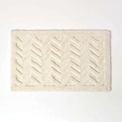 HOMESCAPES Super Absorbent Soft ‘Sandwood’ White Bathmat with Plush Chevron Geometric Pattern and Non Slip Latex Backing, 50 x 80 cm Large Shower Mat Machine Washable