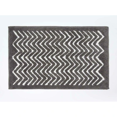 HOMESCAPES Super Absorbent Soft ‘Tidal’ Grey and White 100% Cotton Bathmat with Geometric Chevron Pattern Non Slip Latex Backing, 50 x 80 cm Large Shower Mat Machine Washable