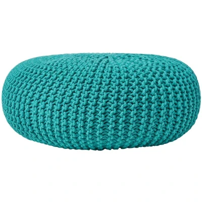 HOMESCAPES Teal Green Knitted Pouffe Footstool Occasional Seat Bean Filled 100% Cotton for Living Room Children or the Elderly