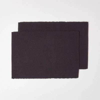 HOMESCAPES Two Placemats Black 100% Ribbed Cotton 12 x 18 Inch (30 45 cm) Easy care Washable at 40 Deg C