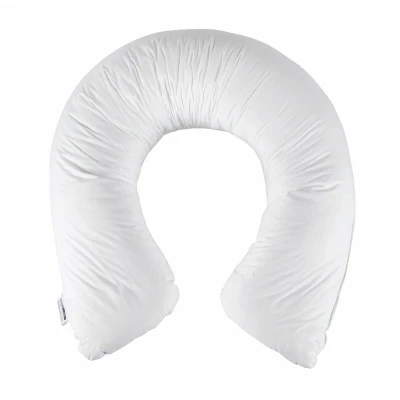 Brand Homescapes Size Available Width: 34 cm. Outer curve: 170 cm. Inner curve: 130 cm Cover Material 100% cotton Filling 85% white goose feather, 15% white goose down Firmness Soft-Medium Pack Includes One pillow Care Instructions Machine washable at 40°C With a luxurious goose feather and down filling, Homescapes' U Shaped Comfort Pregnancy Pillow has been designed to support you through both pregnancy and parenthood. Versatile Support throughout Pregnancy Pregnancy can put a huge amount of strain on an expectant mother's body and especially known to cause significant back, hip and knee pain. Featuring a versatile, curving shape, our U Shaped Pregnancy Pillow is ideal for supporting your body during sitting or sleeping. This practical pillow can be used under your bump to support the weight of your baby, along your back to help you sleep on your side, between your legs to cushion aching hip and knee joints or why not simply wrap it under your neck for orthopaedic comfort? Lavish