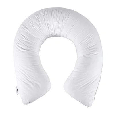 AmazonU-Shaped Comfort Pregnancy Pillow from Homescapes. Maximum width: 105 cm. Outer curve: 170 cm. Inner curve: 130 cm. Thickness: 34 cm Featuring a gently curved shape to support your body and bump in a variety of ways Can also be used after baby has been born as a nursing pillow or to assist your child in sitting upright Filled with hypoallergenic, anti-dust mite Super Microfibre, with a 100% cotton outer casing Machine washable in a large capacity machine at 40°C. Tumble dry on a low heat