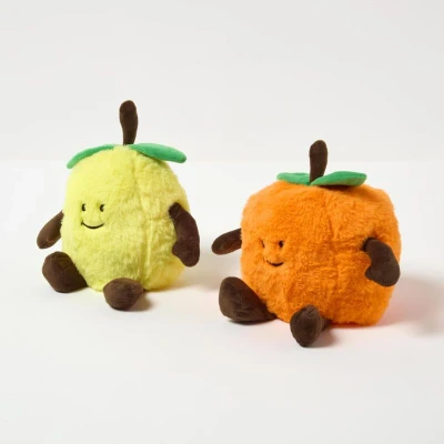 General description Add a playful touch to your home décor with Homescapes’ cute door stoppers. This set includes 2 novelty door stops: 1 lemon and 1 orange. Designed for both function and style, these adorable fruit-shaped door stops keep doors securely in place while adding a fun, nature-inspired accent to any room. They are crafted from soft yet durable fabric, ensuring they are gentle on floors and doors while preventing damage and ensuring long-lasting use. Their sturdy, well-balanced design provides reliable door-holding support, making them perfect for living rooms, kitchens, bedrooms, and hallways. Both decorative and practical, they also make a thoughtful gift for home décor lovers, bringing functionality with a fun, cozy, and playful aesthetic to any space. Technical specifications Brand: Homescapes Size: 15 cm Colour: Orange, Yellow Material: 60% Polyester, 40% Sand Weight: 1.5 kg Care Instructions: Do not wash, spot clean only where needed Special Features: Heavyweight,