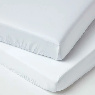 General description Homescapes White Organic Cotton Cot Bed Fitted Sheets are crafted from 100% organic cotton, ensuring a soft and comfortable sleeping environment for your child. This pack includes two sheets, designed specifically for cot beds measuring 70 x 140 cm with a depth of 15 cm. The sheets are not only super soft but also durable, making them an ideal choice for sensitive skin. Technical specifications Brand: Homescapes Size: Cot Bed (70 x 140 cm, 15 cm Deep) Colour: White Material: 100% Organic GOTs Certified Cotton Thread Count: 400 (equivalent, based on 200 yarns woven in a square inch) Care Instructions Machine Wash Usage Perfect for young children and toddlers Kind to sensitive skin, wicking away sweat for comfort throughout the night Durable and becomes softer with every wash Other information Fitted sheets are fully elasticated (not just in the corners) and extra deep to ensure they stay in place as your child moves Developed in 2008, this range is one of the most