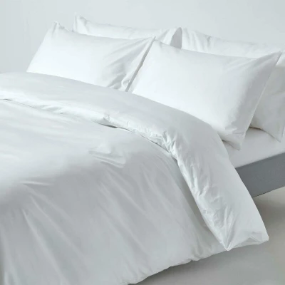 ManoManoGeneral description The HOMESCAPES White Egyptian Cotton Duvet Cover Set is crafted from 100% Egyptian cotton, offering a luxurious and comfortable sleeping experience. This duvet cover set is designed for those who appreciate the crisp feel of pure cotton bedding. With a 200 thread count, it features single ply (40s) super combed yarn woven in a plain percale weave, ensuring durability and softness that improves with each wash. Technical specifications Brand: Homescapes Material: 100% Egyptian cotton Thread Count: 200 Size Available: Single - 135 cm x 200 cm (54" x 79") + 1 pillowcase Double - 200 cm x 200 cm (79" x 79") + 2 pillowcases King - 230 cm x 220 cm (91" x 87") + 2 pillowcases Super King - 260 cm x 220 cm (102" x 87") + 2 pillowcases Colour: White Care Instructions: Machine washable at 60 °C Pack Includes: 1 duvet cover + 1/2 pillowcase(s) 48 cm x 74 cm (19" x 29") Other information