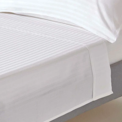 HOMESCAPES White Pure Egyptian Cotton Flat Sheet King 330 TC 500 Thread Count Equivalent Satin Stripe Bed