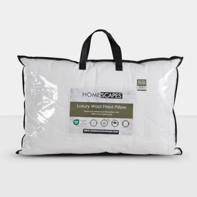 HOMESCAPES Wool Pillow with Quilted Case UK Standard 48x74cm, Adjustable Firmness, Hypoallergenic, Woolmark & OEKO TEX Certified, Washable, All Season Comfort