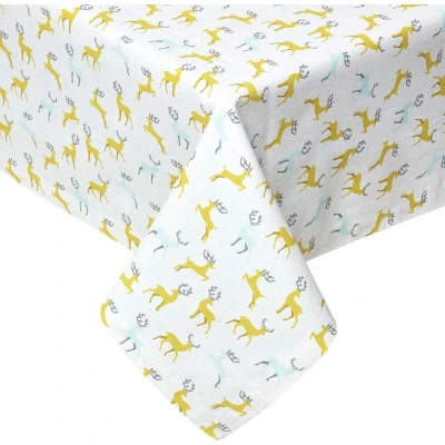HOMESCAPES Yellow & Grey Christmas Tablecloth 100% Cotton 4 Seater Table Cloth 137 x cm Square “Majestic Stag Xmas Pattern