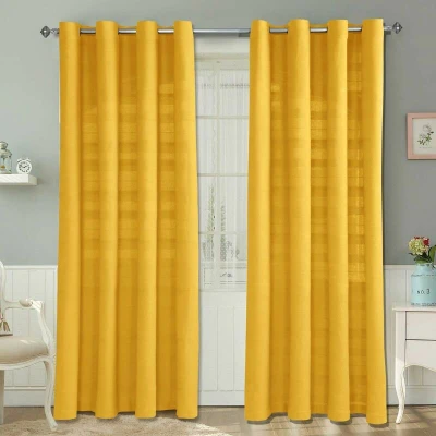 HOMESCAPES Yellow Rajput Eyelet Curtain Pair 167cm (66") Wide x 182cm (72") Drop 100% Cotton Ring Top Plain Curtains