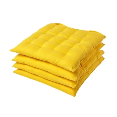 AmazonHomescapes 100% cotton set of 4 dining chair cushions Featuring 2 buttoned chair straps for secure seating Yellow colour dining room seat cushion Square cushion measures approximately 40 cm x 40 cm and 6.5 cm thick Machine Washable at 40°C. When not in use keep out of direct sunlight and rain