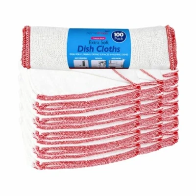 HOMESHOPA Cotton Dish Cloths, 100 Pack White Soft Super Absorbent Home Kitchen Cleaning Scrubbing Washing Up Dishcloths, Washable & Reusable Tea Towels for Cleaning, Drying Surfaces, Dishes