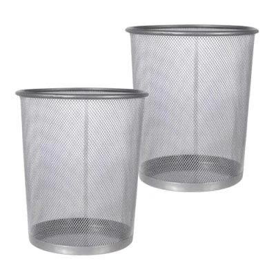 MESH WASTE BASKET: Looking for a functional yet fashionable way to keep your surroundings clean and tidy? Take a look at our mesh wastebasket. These long-lasting mesh trash cans are made of steel wire and are ideal for waste disposal. Its contemporary and elegant form adds a touch of sophistication to any space, while its reinforced base assures stability. The lightweight mesh waste paper bins can be used in a range of situations, from the workplace to the kitchen and beyond. SUPERIOR QUALITY: This waste basket is made of durable steel wire and has a reinforced top rim and solid metal base. It is a strong and long-lasting waste disposal alternative. The mesh design allows greater air circulation, which can aid in the reduction of odours and moisture buildup within the basket. Furthermore, the mesh design's perforations or openings make the trash can lightweight and aesthetically pleasing. OPEN TOP DESIGN: A mesh garbage can with an open top and reinforced rim is a long-lasting and practical way to dispose of waste. The open-top design enables simple and quick waste paper disposal without the need to lift a lid or handle. The reinforced rim maintains the shape and structure of the waste paper bin, making it strong and less likely to tip over. It may also help prevent the mesh material from bending or warping over time, which can have an impact on its overall appearance and functionality. NON-SLIP METAL BASE: The mesh office trash can has a non-slip metal base that provides a sturdy and stable base for sitting. The metal base is intended to keep the kitchen bin from slipping or moving on smooth or slippery surfaces like tile or polished concrete floors. This helps keep spills and messes to a minimum. This is especially useful in commercial or industrial environments where the garbage can is subjected to frequent use and handling. KEEP YOUR ROOM CLEAN: Maintaining cleanliness in your room is important, and this set of 2 rubbish bins can be a great help in achieving that. They are particularly useful when placed near your workstation to prevent the accumulation of paper and leftover wrappers, ensuring that your office and living space remain functional and comfortable. Moreover, the mesh wastebasket not only offers everyday convenience but also adds a stylish industrial look to your room. MULTIPLE USES: These open-top, circular kitchen paper bins with a tapered shape are great for keeping near your desk to reduce clutter and stacking of papers or wrappers. Our waste basket cans are lightweight and robust enough to fit into corners, allowing you to save space in your bedrooms or offices. Our metal dustbins are ideal for use in the workplace, kitchen, bedroom, bathroom, living area, and as a desk accessory.