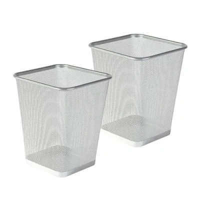 Homeshopa Mesh Wastebasket Trash Can, Lightweight & Sturdy Metal Waste Paper Bin, Garbage Rubbish Bin for Bathrooms Kitchens Home Offices Living Room Dorm Rooms (Silver, Square)