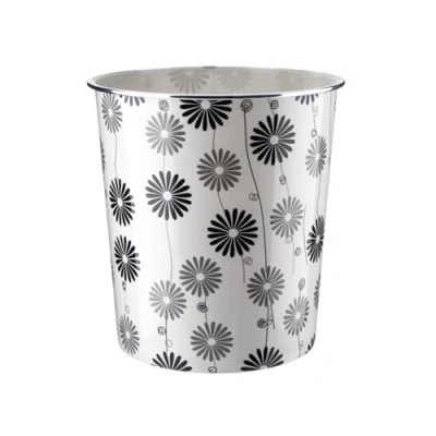 Homeshopa Plastic Waste Paper Basket Bin, Floral Retro Round Trash Can, Lightweight Recycling Rubbish Bin for Kitchen, Bedroom, Bathroom, Open Top Garbage Dustbin, 7.7 Litre (Black & Grey Daisy)