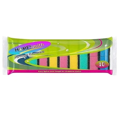1 x 10 PACK OF COLOURFUL SPONGES - Take the strain out of washing up with the pack of high-density premium sponges with a sponge on one side and a scouring pad on the other. It provides extra absorbency, and scrubbing action. Available in colourful packs of 10 so you can colour-coordinate with one sponge for different tasks TOUGH ON GRIME - The green high-quality scouring pad on one side is designed to lift dirt and wipe away grease without effort, perfect for cleaning a barbecue grill and garden furniture. The super-absorbent fibres pick up the toughest grease leaving surfaces spotless and your home in sterling shape GENTLE ON SURFACES - The colourful sponge side with gentle fibres is perfect for wiping down dishes, surfaces, and kitchen appliances - leaving them clean and scratch and streak-free CLEANER FOR LONGER - Use only a little detergent or just water. These cleaning sponges dry quickly and keep fresher for longer - simply squeeze to get rid of excess liquid. They are reusable and can be washed for extended lifetimes HOMESMITH STANDARD - We set the standard for supplying the UK with only the best quality, most affordable products to fill that gap in your life. From Home Products to Souvenirs & Gifts, Tech & Gadgets, and Clothing, everything comes with our quality promise