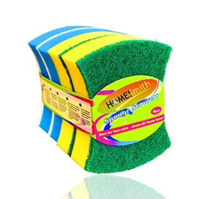 ▶ HOMESmith SPONGE SCOURERS: Keep your dishes sparkling clean with this dual sided sponge scourer ▶ Smart Cleaning Pads: Water is Enough in most cases — No need for sprays, pastes, or powders. Just activate our premium microfiber Pad with the cleaning power of water and safe the environment. ▶ VERSATILE: In the home, perfect to remove dirt and grease from the dishes, pot, pans, oven trays and racks, kitchen worktops, sinks and baths. Outdoors use the scourer to clean a barbecue grill and garden furniture ▶ Easy & Quick Cleaning - High density sponge has delicate soft handle, high foaming rate, easy rinse, porous fibre structure and durability. ▶ What’s included? Pack of 4 Colourful absorbent high density cleaning and washing shaped sponge pads.