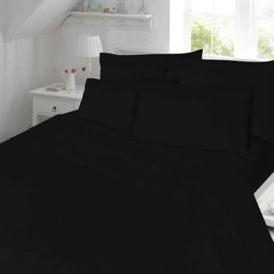 Homespace Direct 180 Thread Count Duvet Cover Set Bedding Black Super King