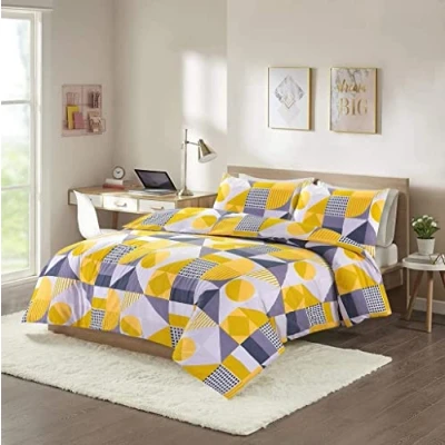 Homespace Direct Modern Geometric Double Bedding Duvet Cover Set Style Mustard Polycotton