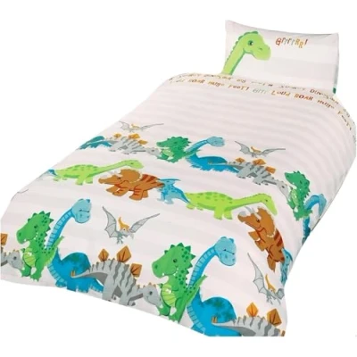 Homespace Direct Rapport Home Dinosaur Kids Polycotton Duvet Set with Pillowcase, Brown, Toddler