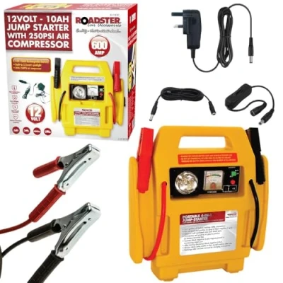 Powerful 12V jump starter for dead batteries Built-in air compressor for tire inflation Compact, portable, and lightweight design LED flashlight for emergency use USB charging ports for mobile devices Suitable for cars, trucks, motorcycles, and more
