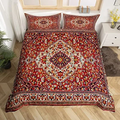 Homewish Bedding Set King Oriental Comforter Cover Vintage Floral Bed Retro Tribal Pattern Duvet Traditional Boho Quilt Aesthetic Man Ala Decotive 3Pcs