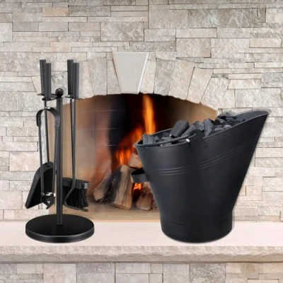 Fireplace Tool Set - Including A 5pc Fire Companion Set And A Coal Scuttle. The Fireside Companion Set Measures Approximately 49cm Tall, And Includes Essential Fireplace Tools Such As A Poker, Brush, Shovel, Tongs, And A Sturdy Stand. The Coal Scuttle Measures 32cm Tall, 30cm Long And 24cm Wide, Our Coal Storage Bucket Is The Perfect Solution For Keeping Your Fireside Neat And Tidy. Heavy Duty Fire Poker Set - Our Fireplace Tool Storage Set Is Made From Sturdy, Heat Treated Alloy Steel, Ensuring It Will Last Year After Year. Powder Coated With A Quality Black Finish, These Fire Place Tools Will Look Amazing As Well Next To Your Fire. Heavy Duty Coal Scuttle Bucket - Strong, Sturdy And Long-lasting, This Antique Style Black Coal Bucket Is Crafted With Care From Powder Coated Steel And Stands Up Comfortably To Repeated Use. Both Heat Resistant, And Hard Wearing, This Black Bucket Is The Perfect Addition To Your Fireplace. Large Capacity Coal Store - Featuring A Large Capacity And An Open Top Design, This Black Coal Scuttle Is The Perfect Way To Keep Your Fire Going, No Matter What Time Of Year. Suitable For Use With A Coal Shovel, Or By Simply Pouring, This Large Coal Bucket Will Help Keep You Warm. Companion Sets For Fireplaces - With The Log Splitter Brush, Shovel, And Tongs At Your Disposal, Cleaning Up Ash And Debris Becomes A Breeze. Keep Your Fireplace Looking Pristine With Minimal Effort., Manufacturer: Homezone®