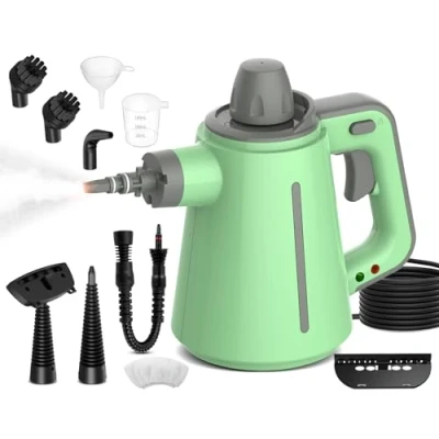 HomHou Portable Steam Cleaner, 380ml Multifunctional Cleaner with Safety Lock And 10 Accessories, Handheld for Floor, Carpet, Toilet, Sofa, Car, Window, Oven Bathroom (Green)
