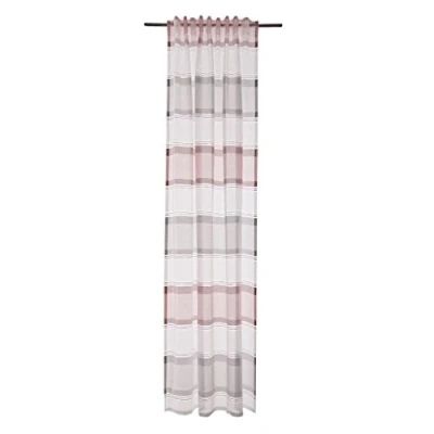Homing Semi Transparent Curtain Horizontal Striped Rose Grey (1 Piece) 245 x 140 cm (H W) 5033 15