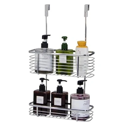 Extra deep and wide baskets provides extra space for your toiletries and looks luxurious Size: 28.5 x 49 x 10 cm approx WHEN hanged Easy clean removable baskets 2 baskets provide extra space for a loofah, razor etc New Chrome plated shower caddy Ideal for any bathroom or shower cubical