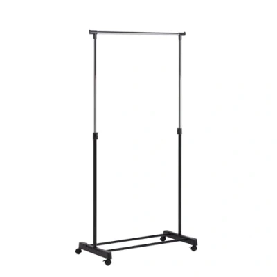 Adjustable height from 40-inch to 65-inch Locking swivel casters- easy to move Steel frame- sturdy and rust-resistant Bottom shoe rack Item dimensions: 34x17x41-inch