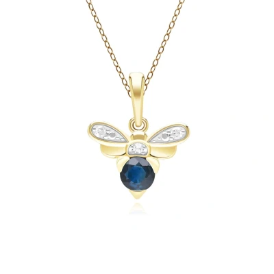 Honeycomb Inspired Blue Sapphire and Diamond Bee Pendant Necklace in 9ct Yellow Gold