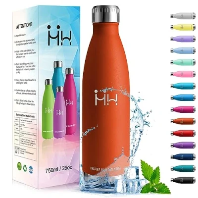 HoneyHolly 750ML Stainless Steel Double Wall Insulated Water Bottle, BPA Free, Leak Proof, Keeps Hot Up to 12 Hours, Cold 24 Hours