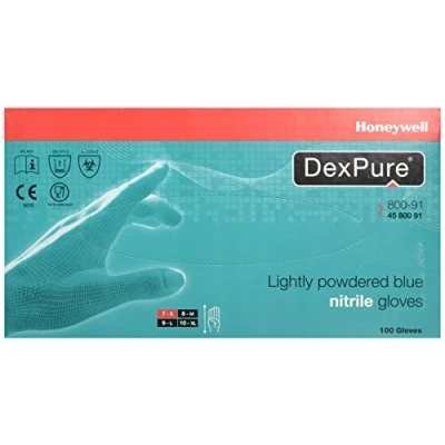 Honeywell DexPure 800 91 Lightly Powdered Disposable Chemical Protective Nitrile Gloves, Ambidextrous, Certified for Food Contact, 24 cm Length, Blue Colour, Size S, 4580091 S (Pack of 100 Gloves)