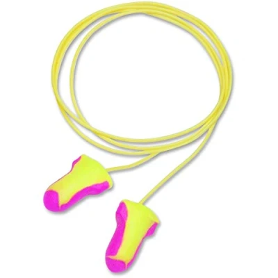 LASER LITE HI-VIS COLORS: Vibrant yellow and magenta color is highly visible from a distance to help ensure employee compliance and hearing safety; It also helps prevent loss or misplacement EXCELLENT NOISE REDUCTION: Self-adjusting foam earplugs expand in the ear upon insertion to create a secure seal for excellent hearing protection in loud workplaces and jobsites; SNR 35 dB; NRR 32 IDEAL FOR SMALLER AND LARGER EARS: Small size of earplug delivers optimal fit and ear protection for smaller ears, but low-pressure Polyurethane foam expands to fit virtually any size ear and ear canal COMFORT AND HYGIENE: Corded for easy retrieval and to avoid loss; Contoured T-shape allows for easy insertion, removal, and comfortable wear all day; Smooth, soil-resistant, closed-cell foam skin helps prevent dirt build-up RECOMMENDED INDUSTRIES: Farming, chemical, construction, law enforcement, manufacturing, packaging, military, mining, municipal, oil and gas, pharmaceutical, steel, metal, transportation; 100 pairs of earplugs per box