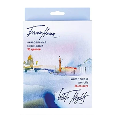 Honsell 80129 White Nights Watercolour Pencils Set of 36 in Cardboard Case, Wood Coloured Pens with High Colour Brilliance, Soft Paint Stroke, Water soluble