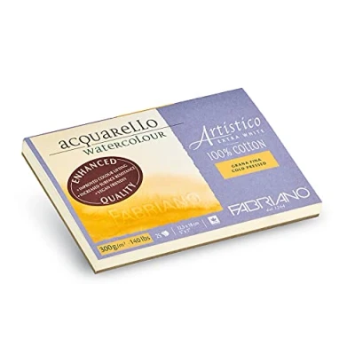 Honsell Fabriano Artistico Acquarello Watercolour, Extra White, Fine Grain Cold Pressed, 12.5 x 18 cm, 25 Sheets 300 g/m², High Quality Artist Watercolour Cardboard, Pad Glued on 4 Sides, Vegan